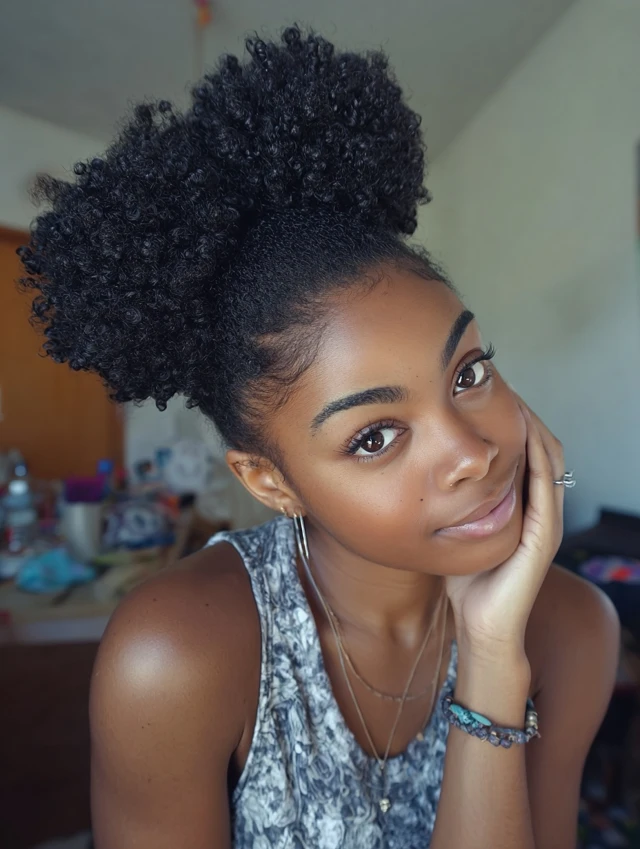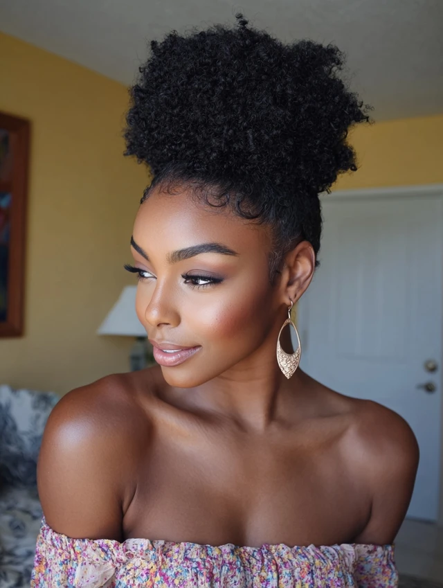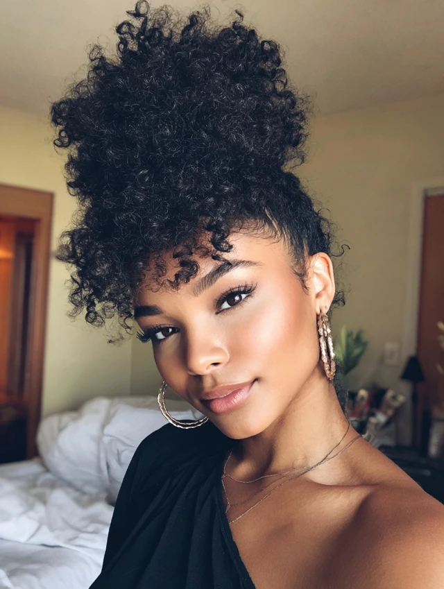 - Updos & Puffs: High puffs, buns, or ponytails.