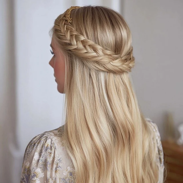 Why It Works: Adds a romantic twist to long straight hair without compromising its sleek beauty. The braid acts as a built-in accessory.