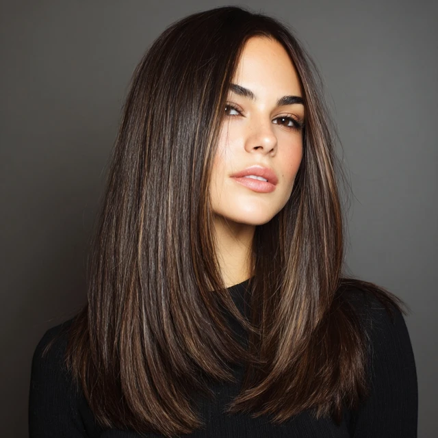 Why It Works: Coarse hair straightened to perfection looks luxurious. A sleek medium cut with a sharp center part feels modern, clean, and high-fashion.