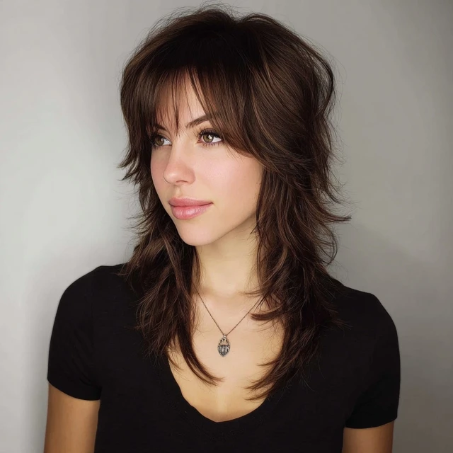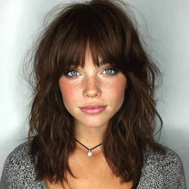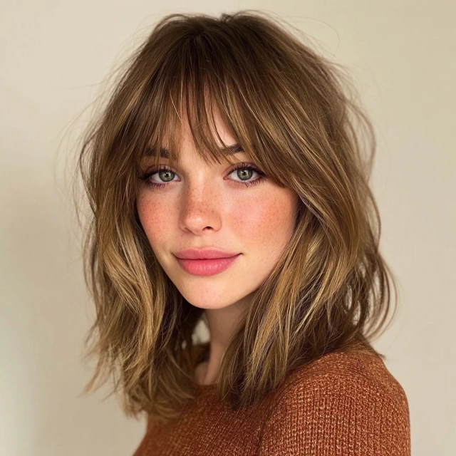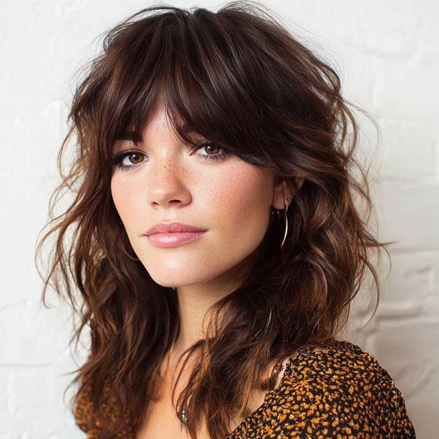Why It Works: A shag cut is all about texture. On thick hair, it creates lightness and movement, while wispy bangs bring a soft edge without overpowering your features.