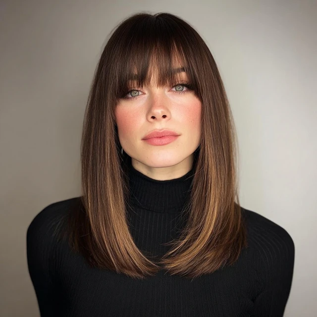3. Sleek Shoulder-Length Cut with Blunt Bangs